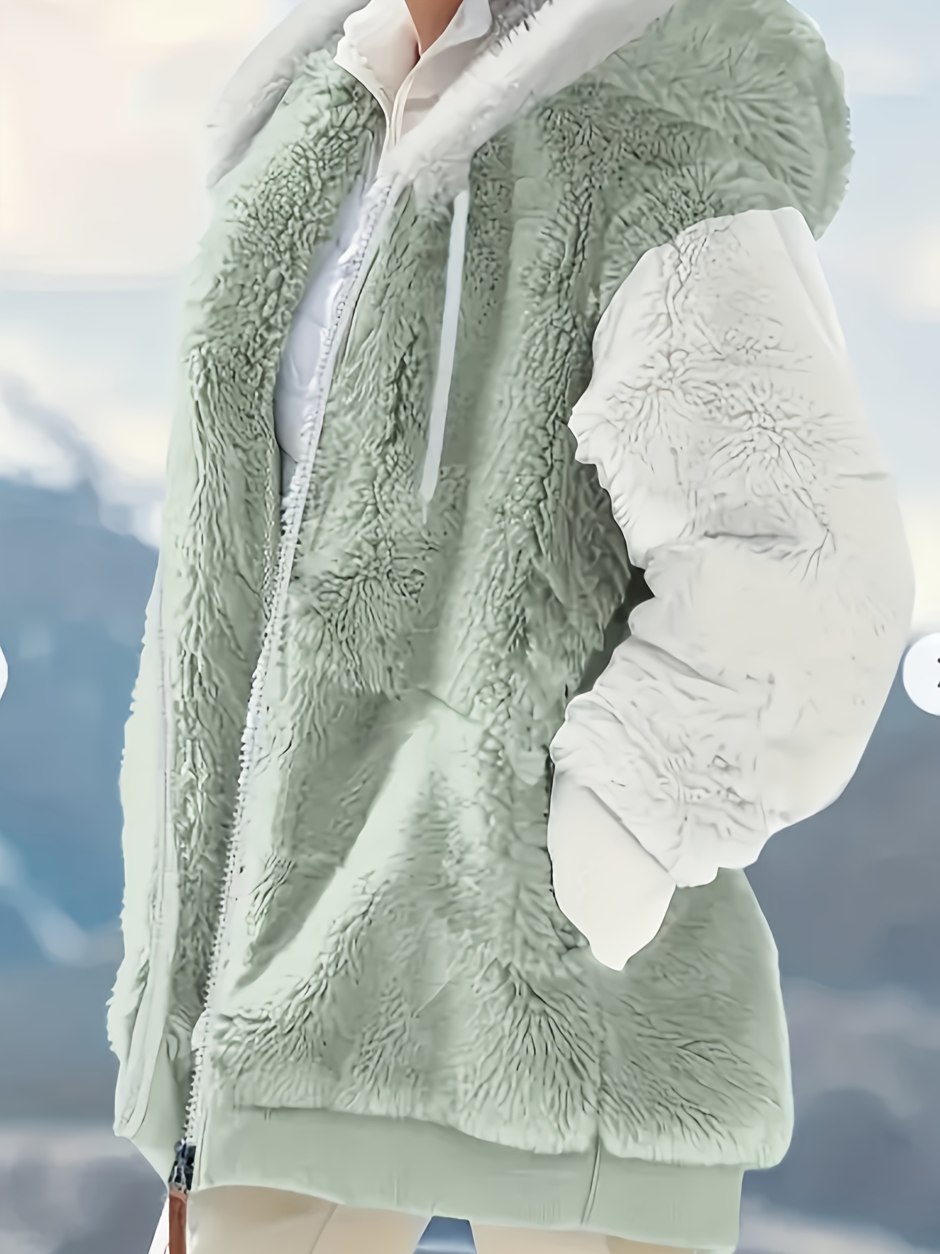 Women'S Plus Size Thick Plush Hooded Coat with Pockets - Solid Color Sporty Winter Jacket, Adjustable Drawstring Hood & Long Sleeves for Autumn & Winter, Cozy Casual Outerwear, Winter Jacket, Cold Weather Apparel, Durable Warmth