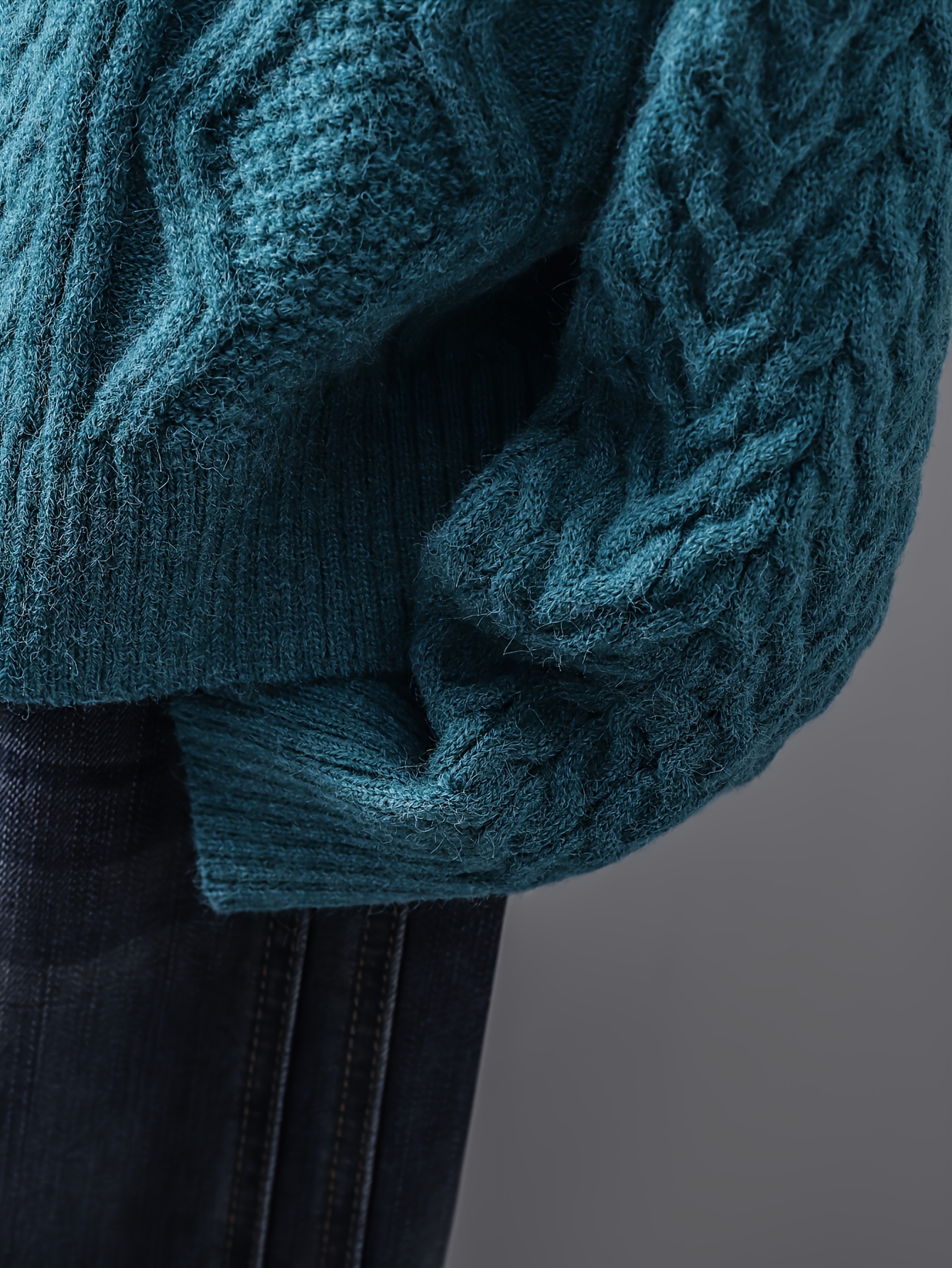 Women'S Vintage Cable Cardigan - Navy Button-Front Sweater with Ribbed Collar, Long Sleeve Casual Open Front Sweater for Spring/Fall, Office, Party