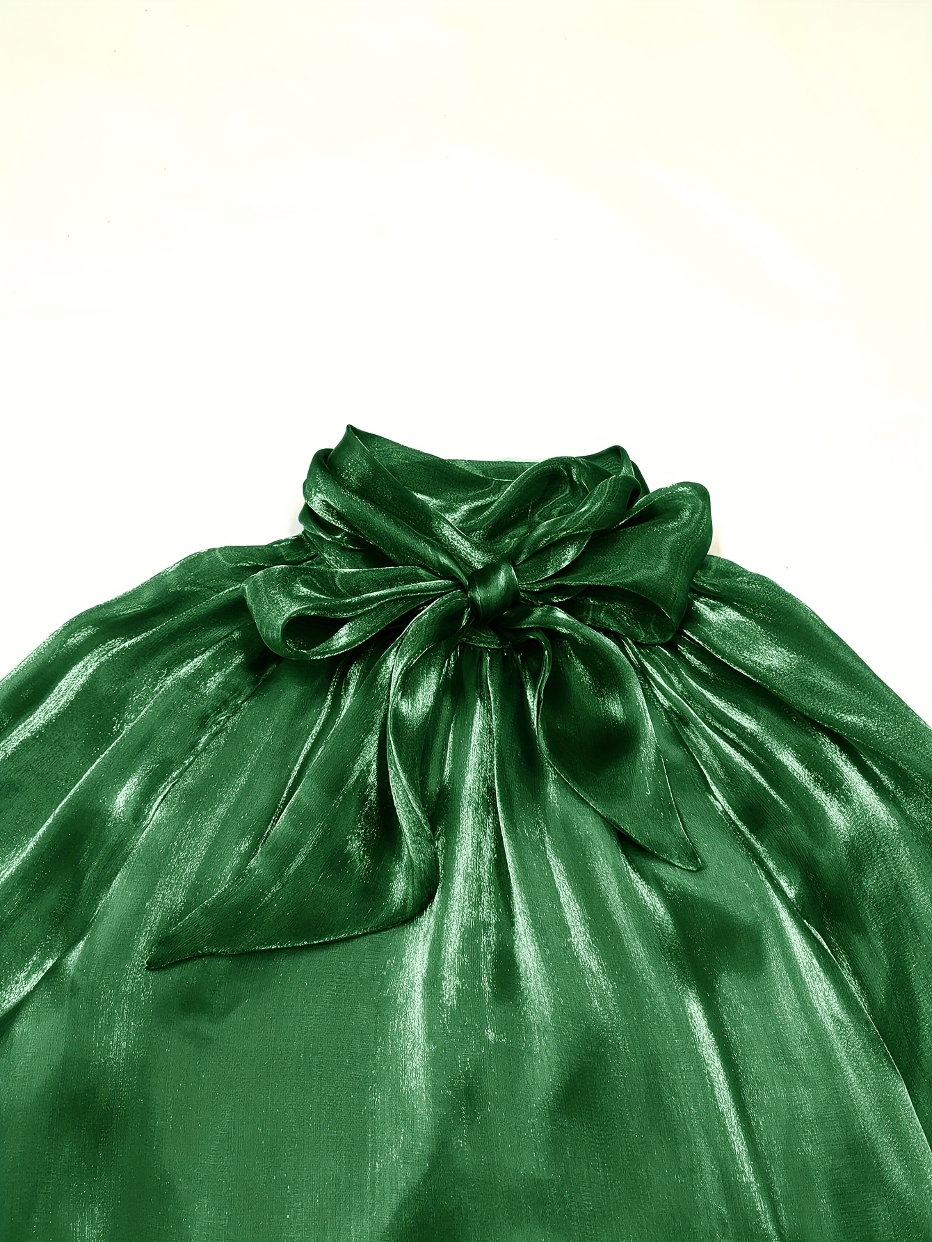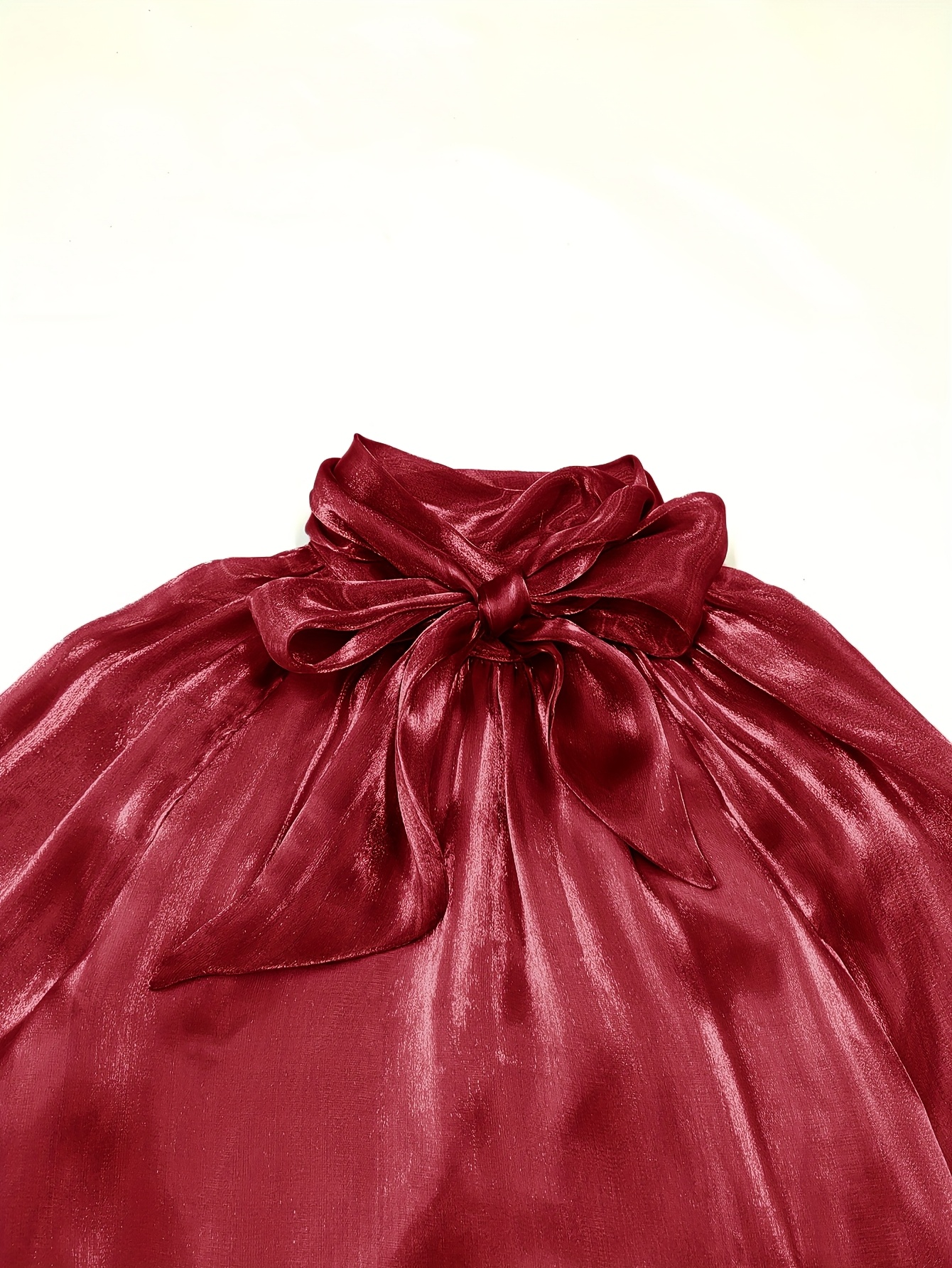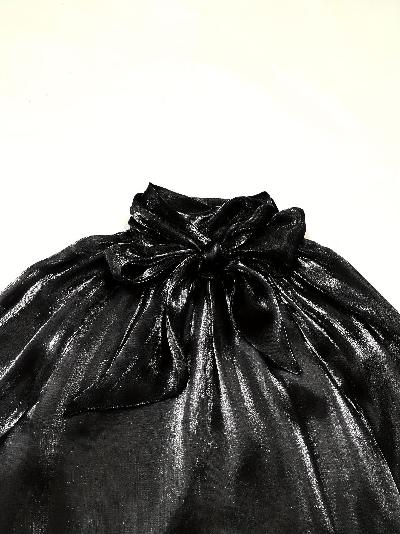 [Laceup Detailing Retro Fashion] Vintage Elegant Women's Blouse - Long Sleeve High Neck Shirt with Tie-Front Detail, All-Season Formal & Everyday Blouse for Office, Parties, Casual Outfits - Women's Clothing, Party Attire, Laceup Detailing, Office Attire, Retro Fashion