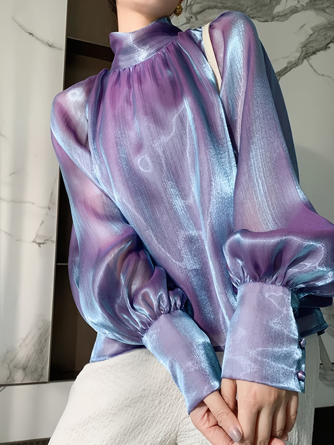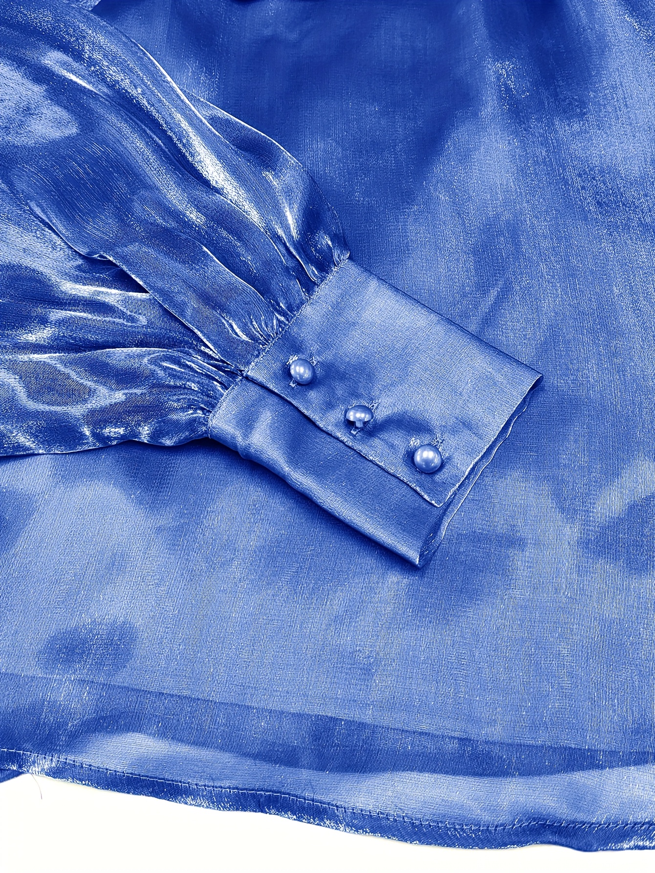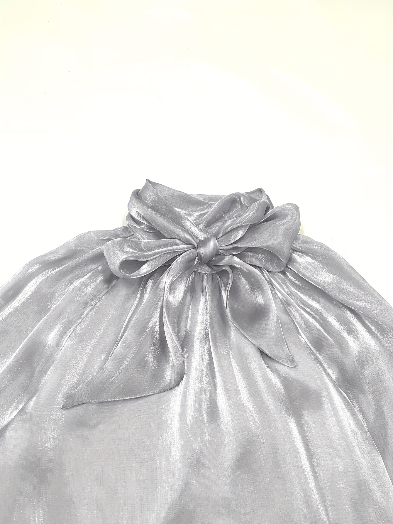 [Laceup Detailing Retro Fashion] Vintage Elegant Women's Blouse - Long Sleeve High Neck Shirt with Tie-Front Detail, All-Season Formal & Everyday Blouse for Office, Parties, Casual Outfits - Women's Clothing, Party Attire, Laceup Detailing, Office Attire, Retro Fashion