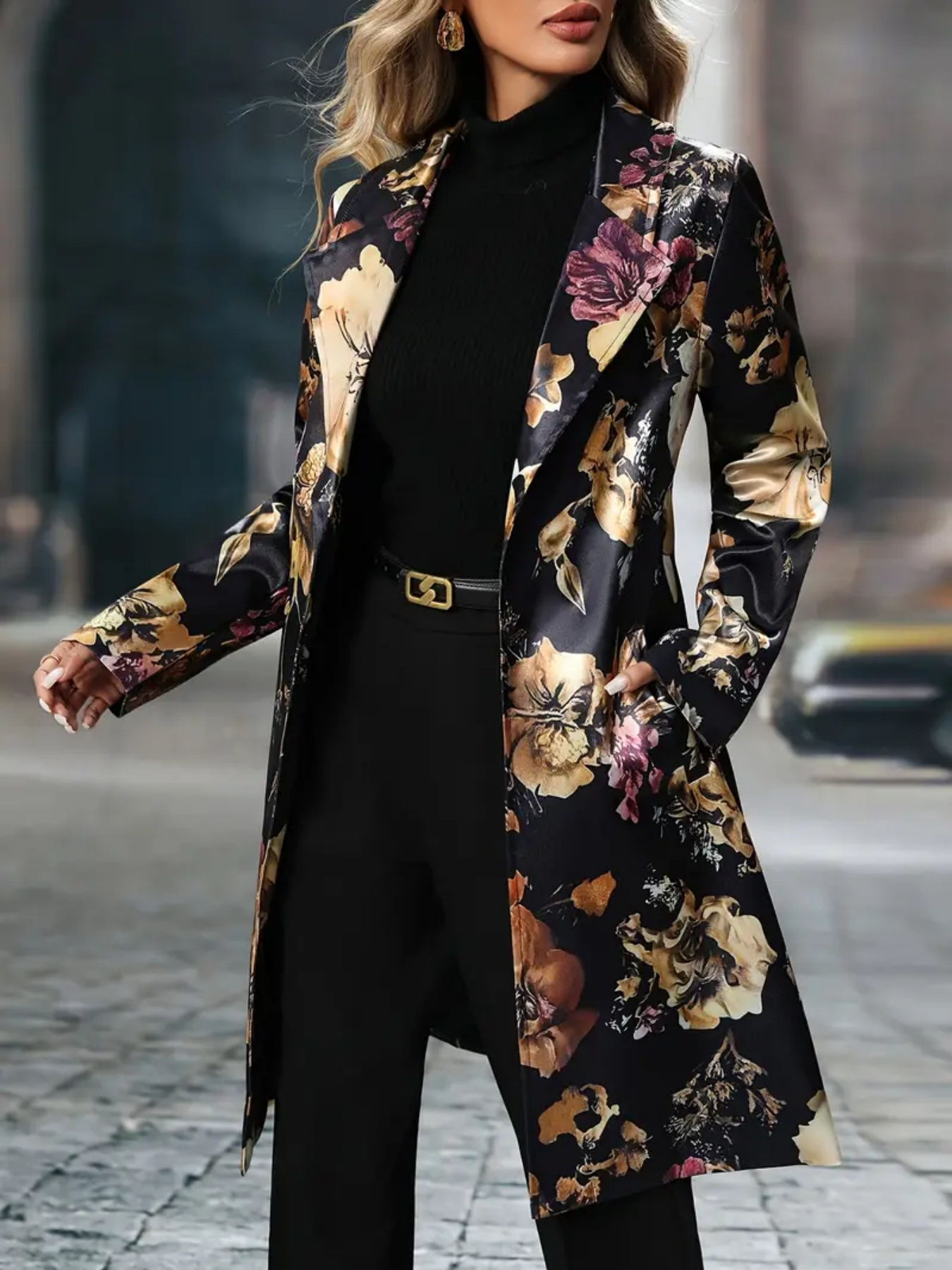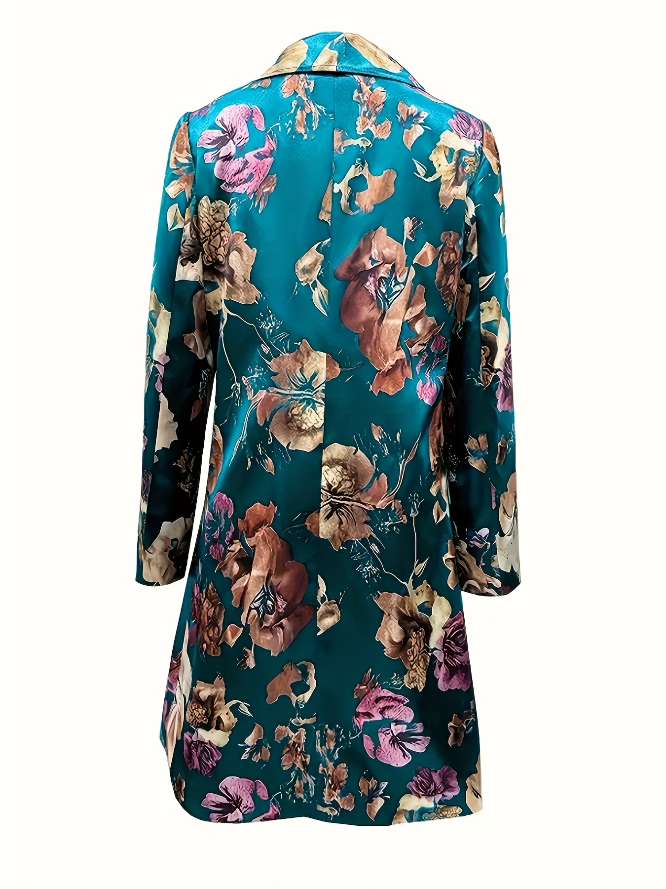 Plus Size - Plus Size Women'S Elegant Floral Print Blazer - Long Sleeve, Single-Breasted, Non-Stretch Fabric, Lapel Collar, Regular Fit, Fall/Winter Casual, Casual Wear Blazer | Floral Print Blazer | Nonstretch Fa