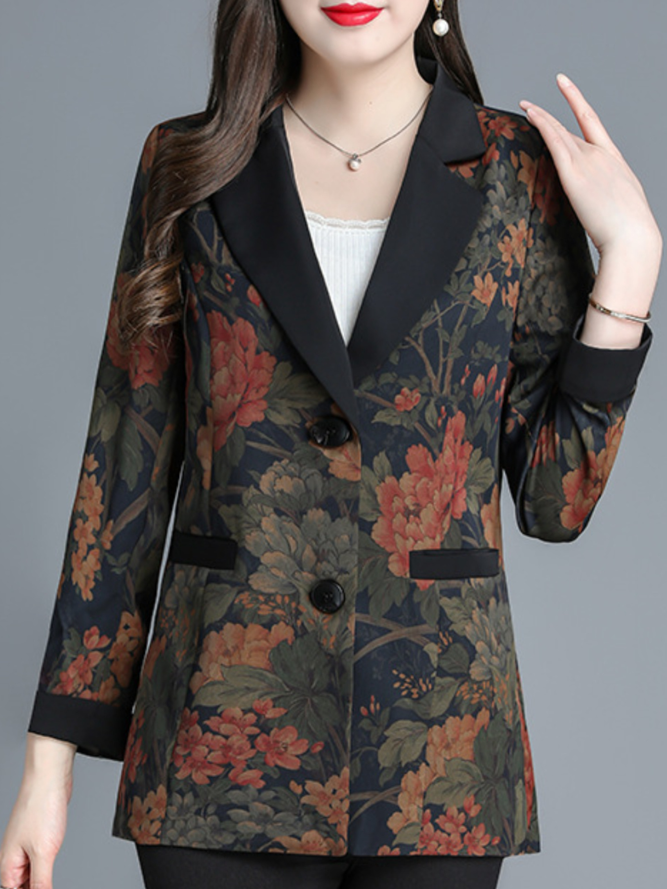 Plus Size, Scacto Women's Vintage Floral print Blazer Jacket - Elegant Lapel Collar & Belted Waist, Single-Button Front, Dropped Shoulder - Winter Formal Party Wedding Attire, Hand Washable Statement Piece for Special Occasions