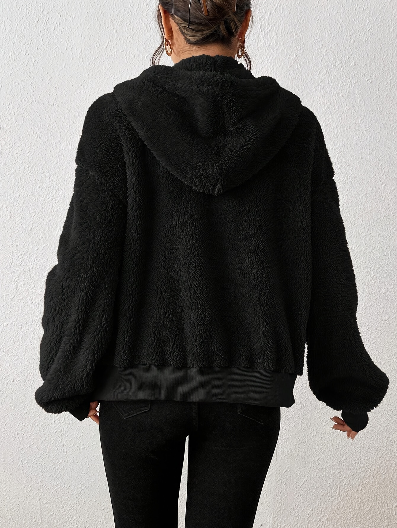 Plus Size Women's Winter Hooded Zip Jacket - Solid Color Sporty College Style Sweatcoat with Hood, Thick Warm Outerwear for Cold Weather, Gym, Skiing & Casual Attire (Machine Washable)
