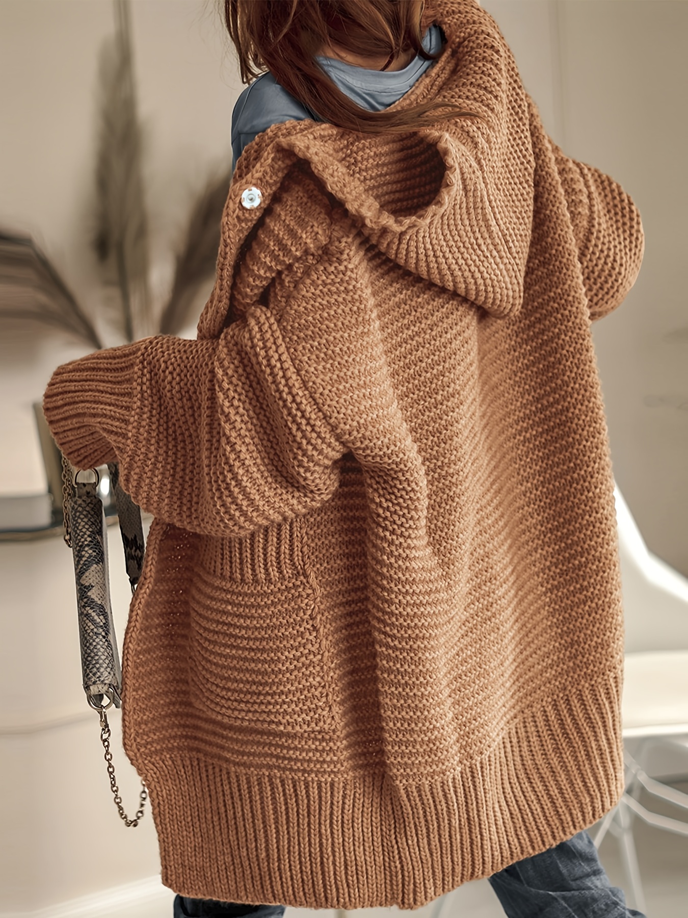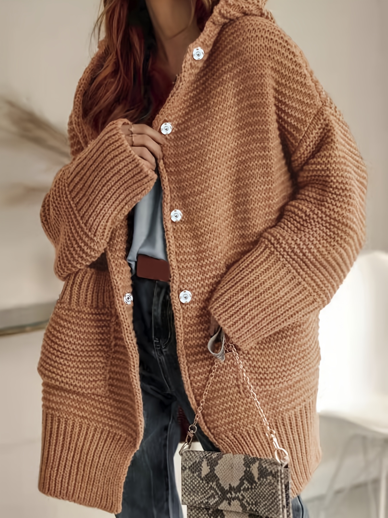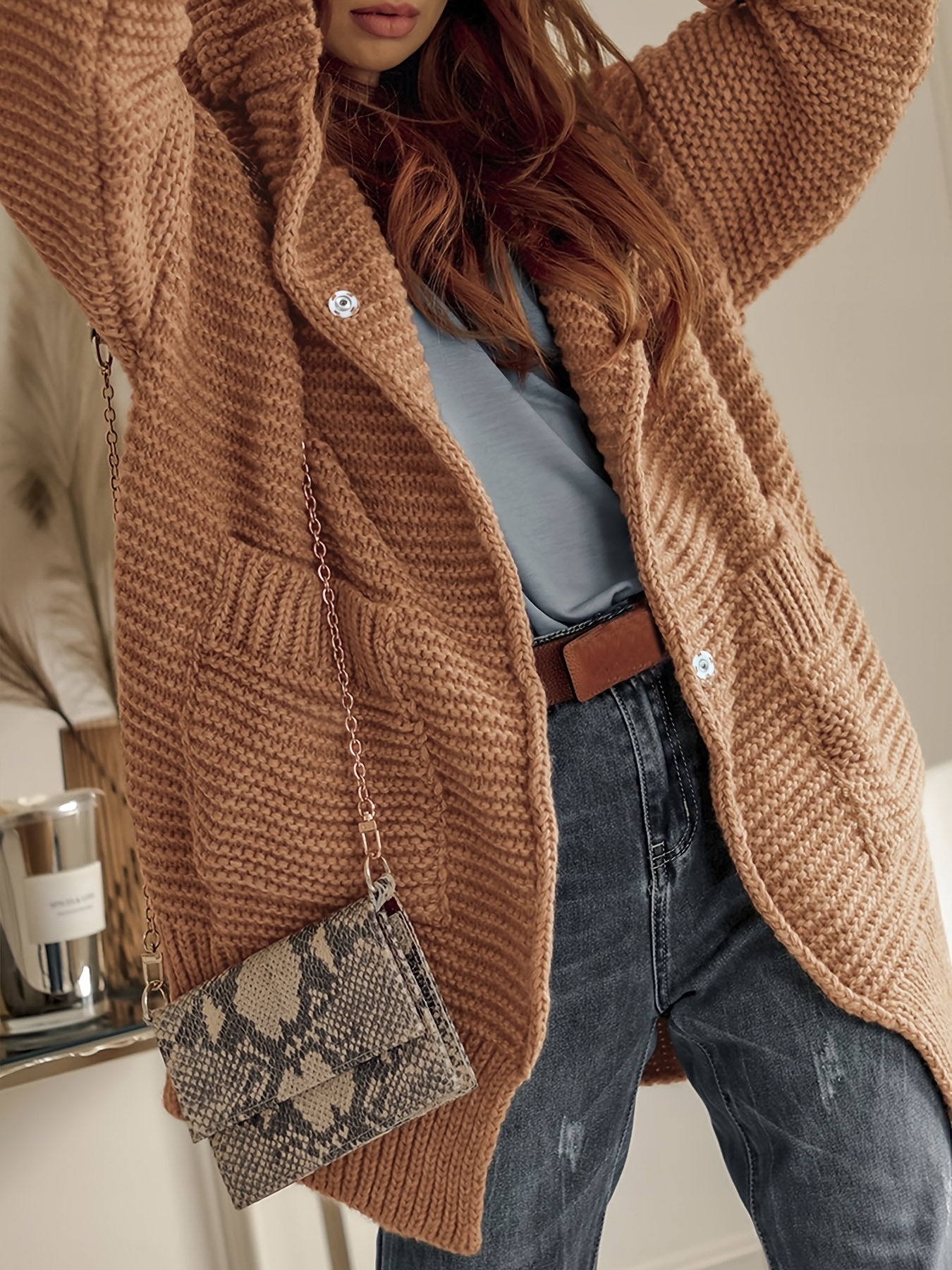 Women'S Elegant Button-Up Cardigan with Pockets - Solid Color Beige Open Front Sweater for Fall/Winter, Long Sleeve Cozy Warmth, Versatile Layering Piece, Cozy Fall Apparel, Classic Collar Design, Durable Fabric