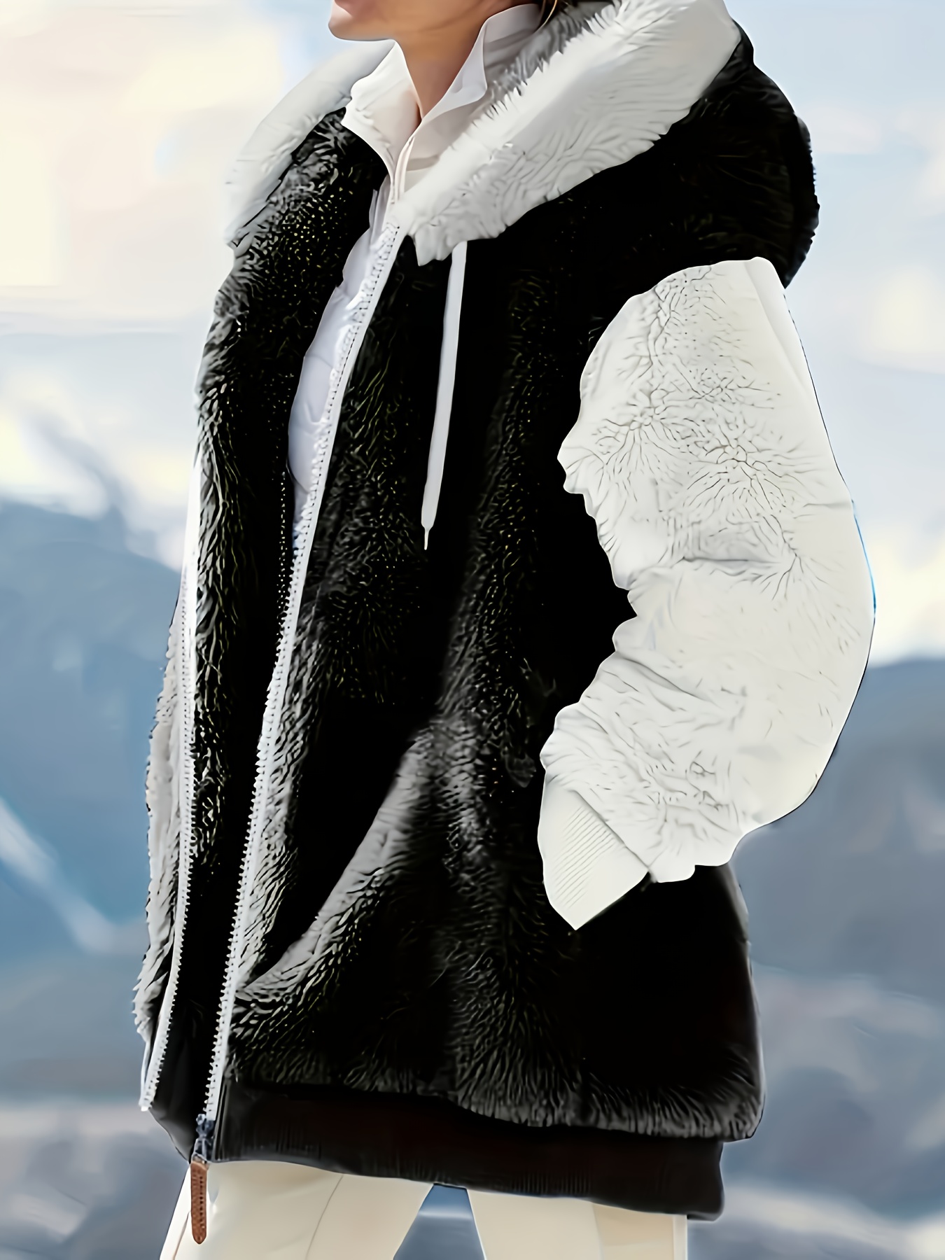 Women'S Plus Size Thick Plush Hooded Coat with Pockets - Solid Color Sporty Winter Jacket, Adjustable Drawstring Hood & Long Sleeves for Autumn & Winter, Cozy Casual Outerwear, Winter Jacket, Cold Weather Apparel, Durable Warmth