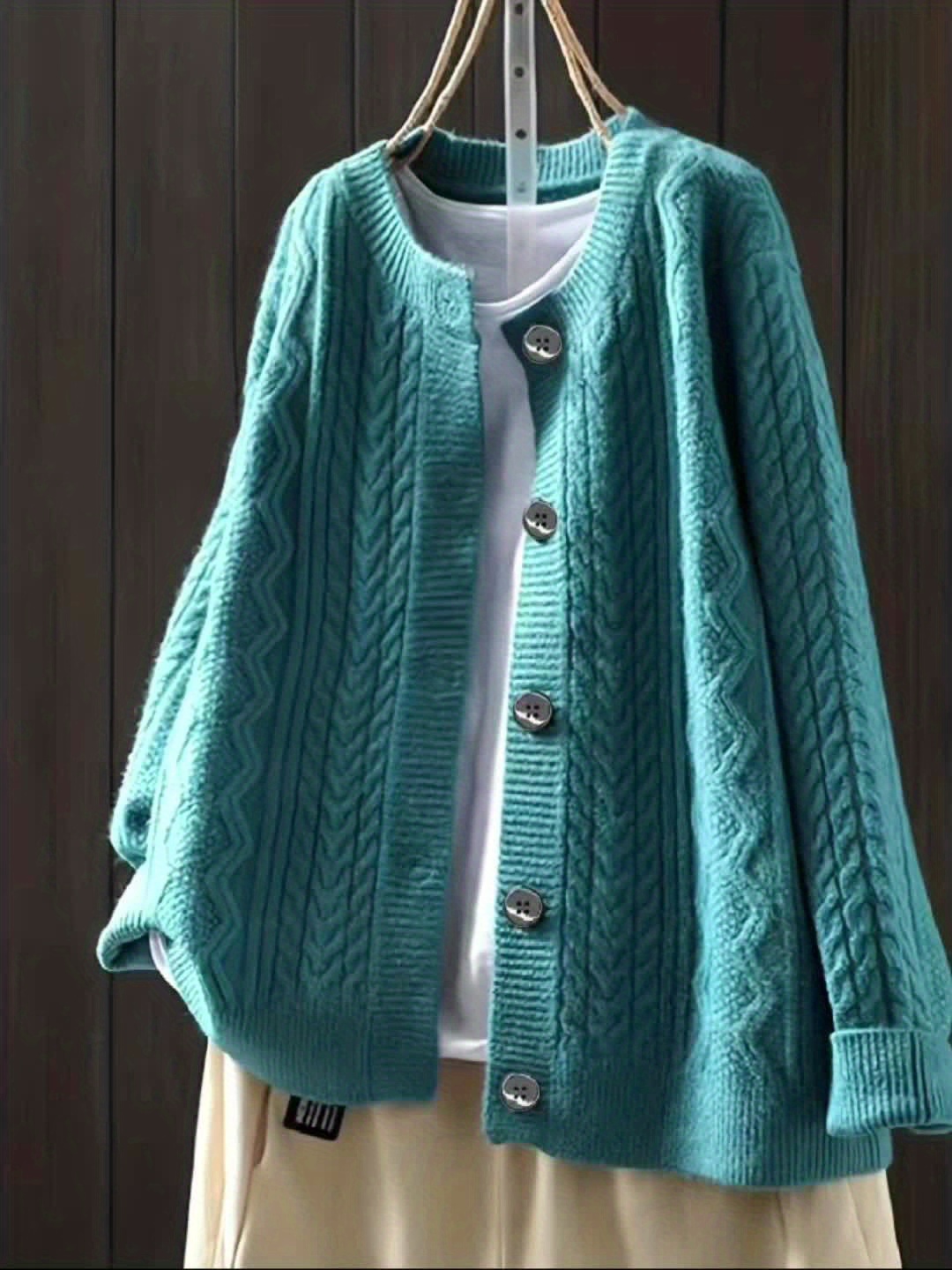 Women'S Vintage Cable Cardigan - Navy Button-Front Sweater with Ribbed Collar, Long Sleeve Casual Open Front Sweater for Spring/Fall, Office, Party