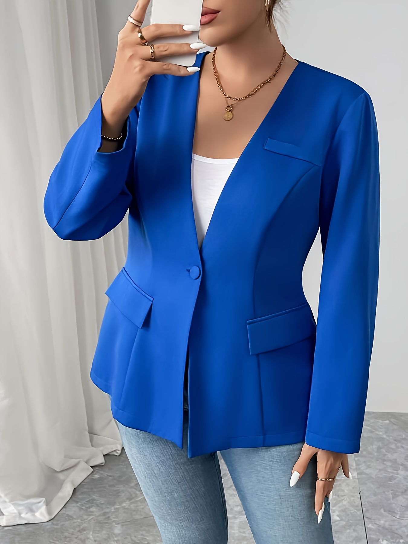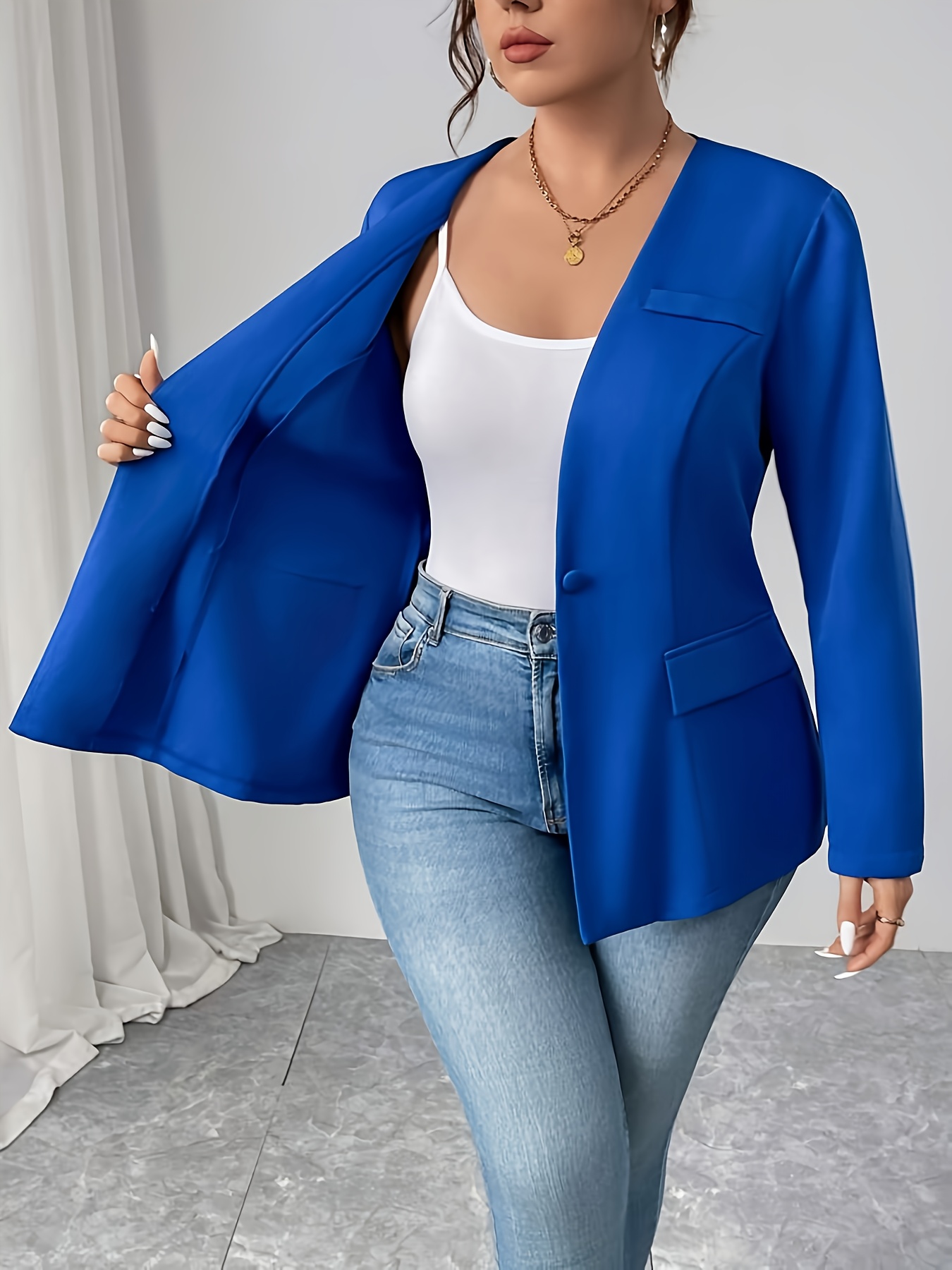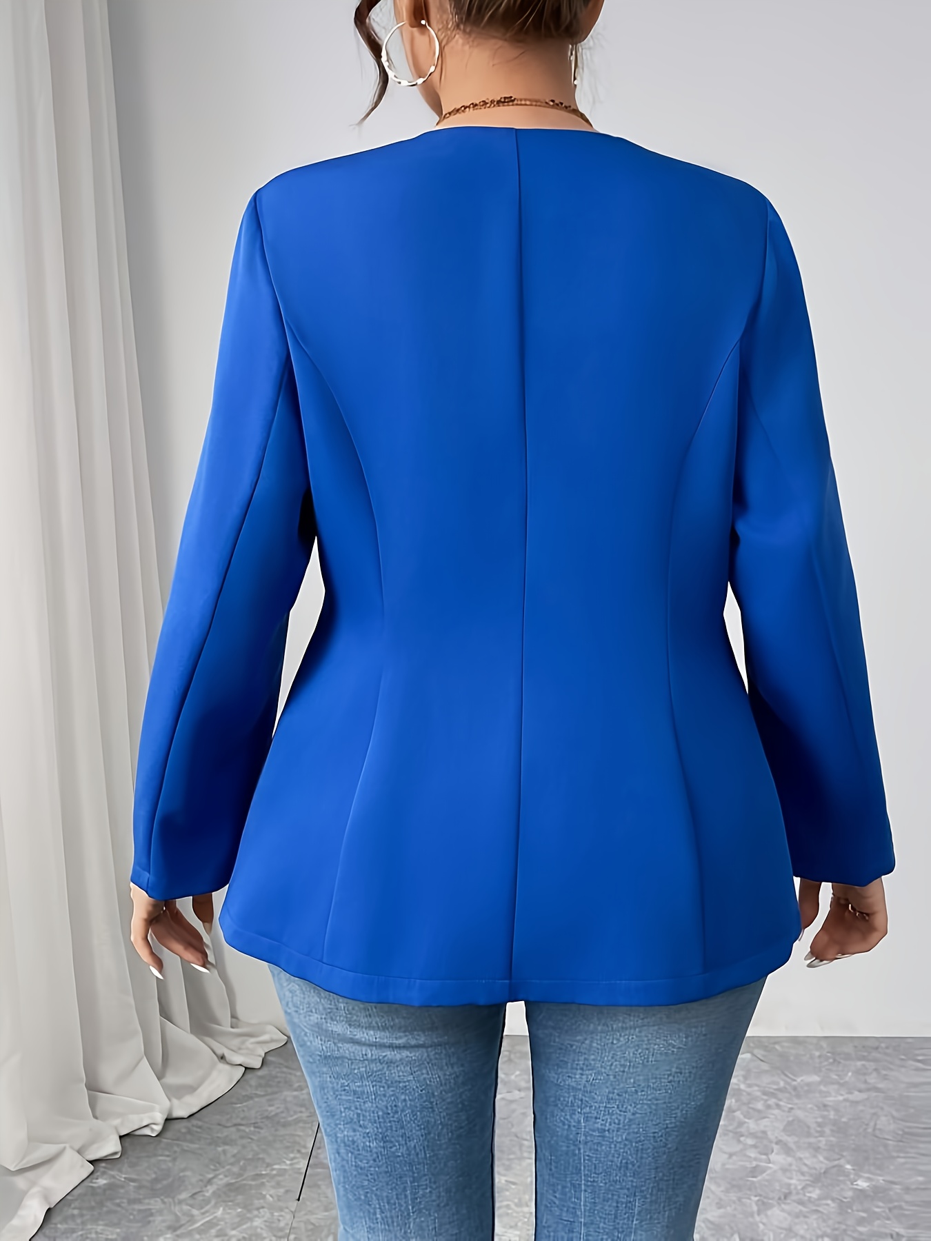 Plus Size - Plus Size, - Plus Size, Women'S Elegant Blue Blazer - Structured Lapel Collar, Non-See-Through Professional Jacket for Everyday & Special Events, Spring/Fall/Summer Outerwear