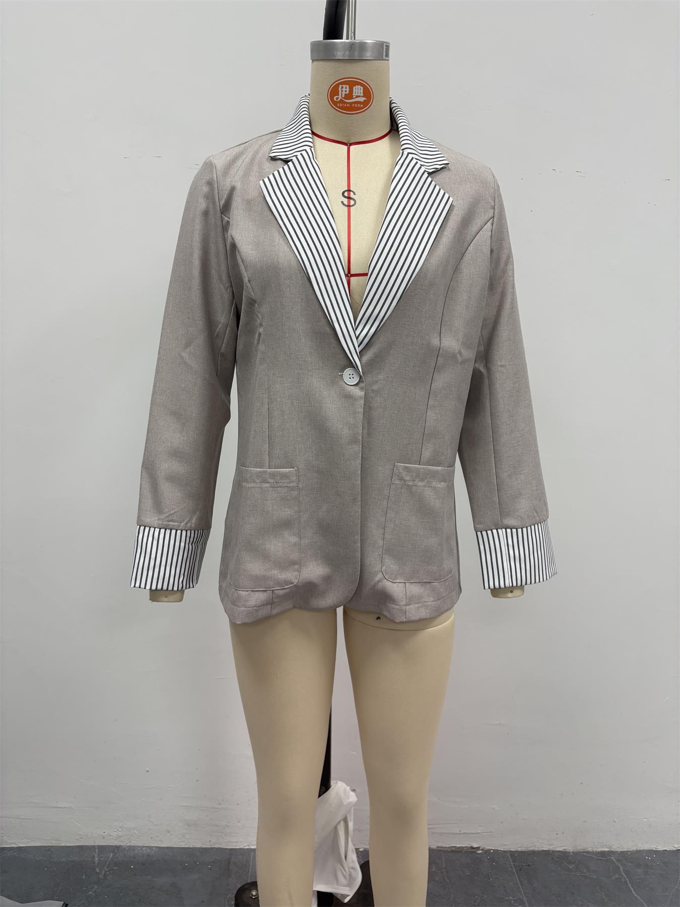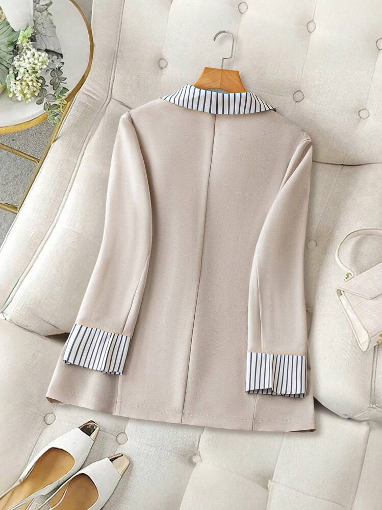 Plus Size - Plus Size, Women'S Plus Size British Style Blazer - Elegant & Contrast Lapel Lapel Jacket, Structured Loose Fit Tailored Suit Coat for Professional & Formal Occasions, Spring/Fall Casual to Formal Outfits, Classic Solid Color Non-Stretch