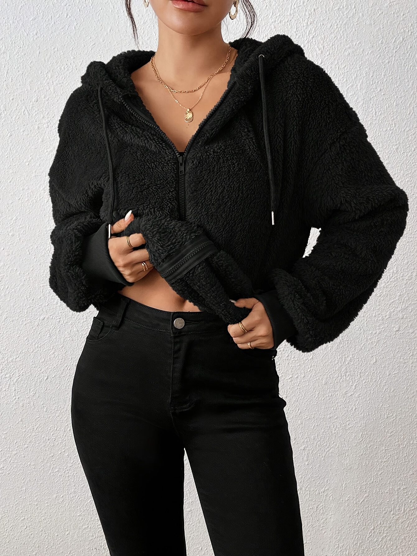 Plus Size Women's Winter Hooded Zip Jacket - Solid Color Sporty College Style Sweatcoat with Hood, Thick Warm Outerwear for Cold Weather, Gym, Skiing & Casual Attire (Machine Washable)
