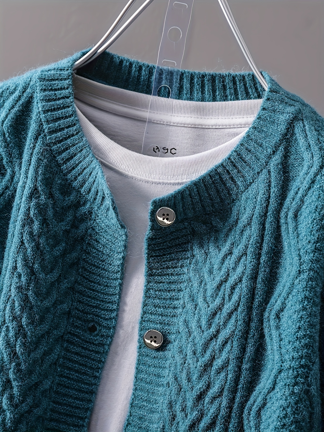 Women'S Vintage Cable Cardigan - Navy Button-Front Sweater with Ribbed Collar, Long Sleeve Casual Open Front Sweater for Spring/Fall, Office, Party